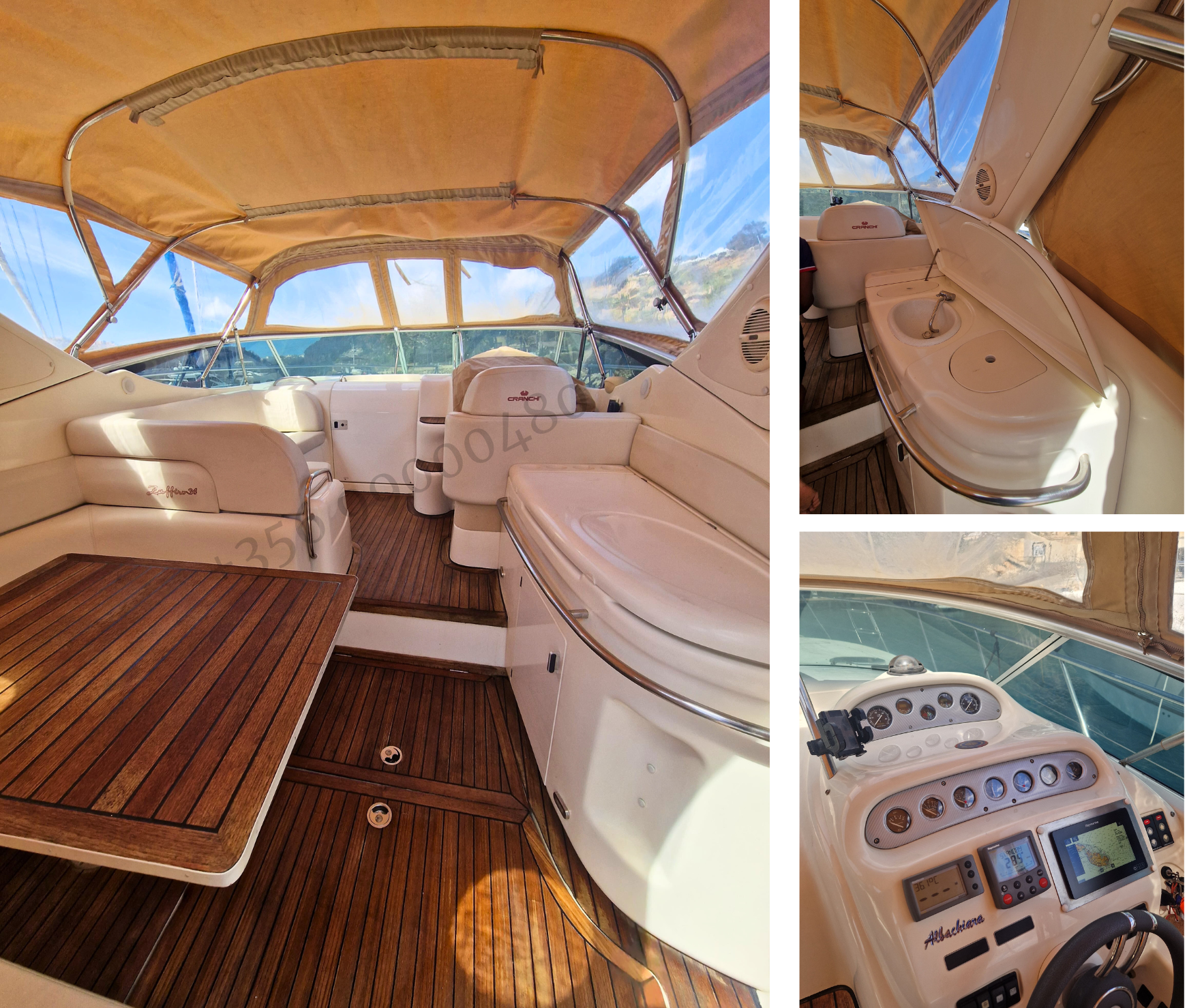 Cranchi Zaffiro 34 Boat Year: 2001 (1st registration 2005) VOLVO Kad 43 Generator 4 kW Hot/cold air conditioning in all rooms. Battery charger 30 amp/h with 3 outputs 8 mm steel chain windla ...